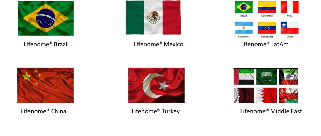 Lifenome currently has active opportunities for country subsidiaries in Brazil, Mexico, China, and Turkey and regional subsidiaries in LatAM and the Middle East. Lifenome is also open to other markets where opportunities may exist for potential partnerships.